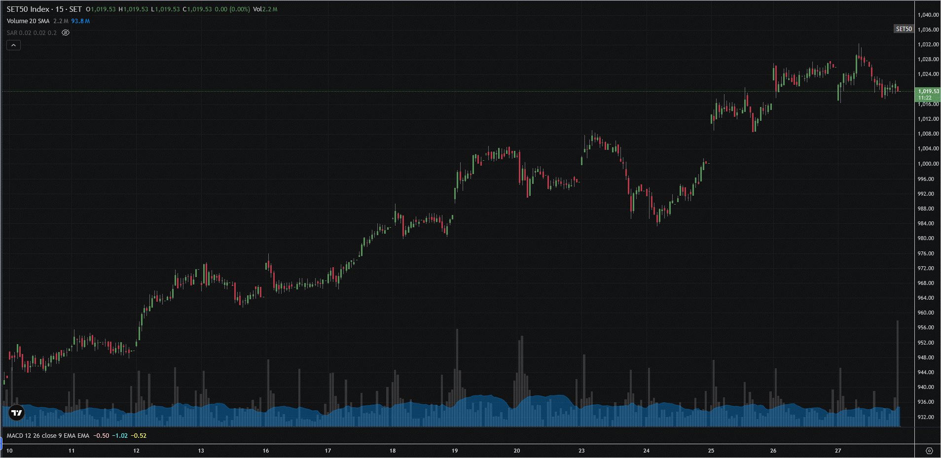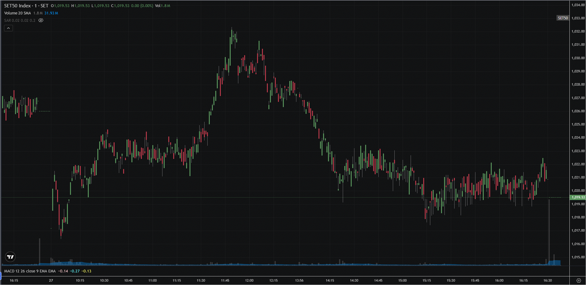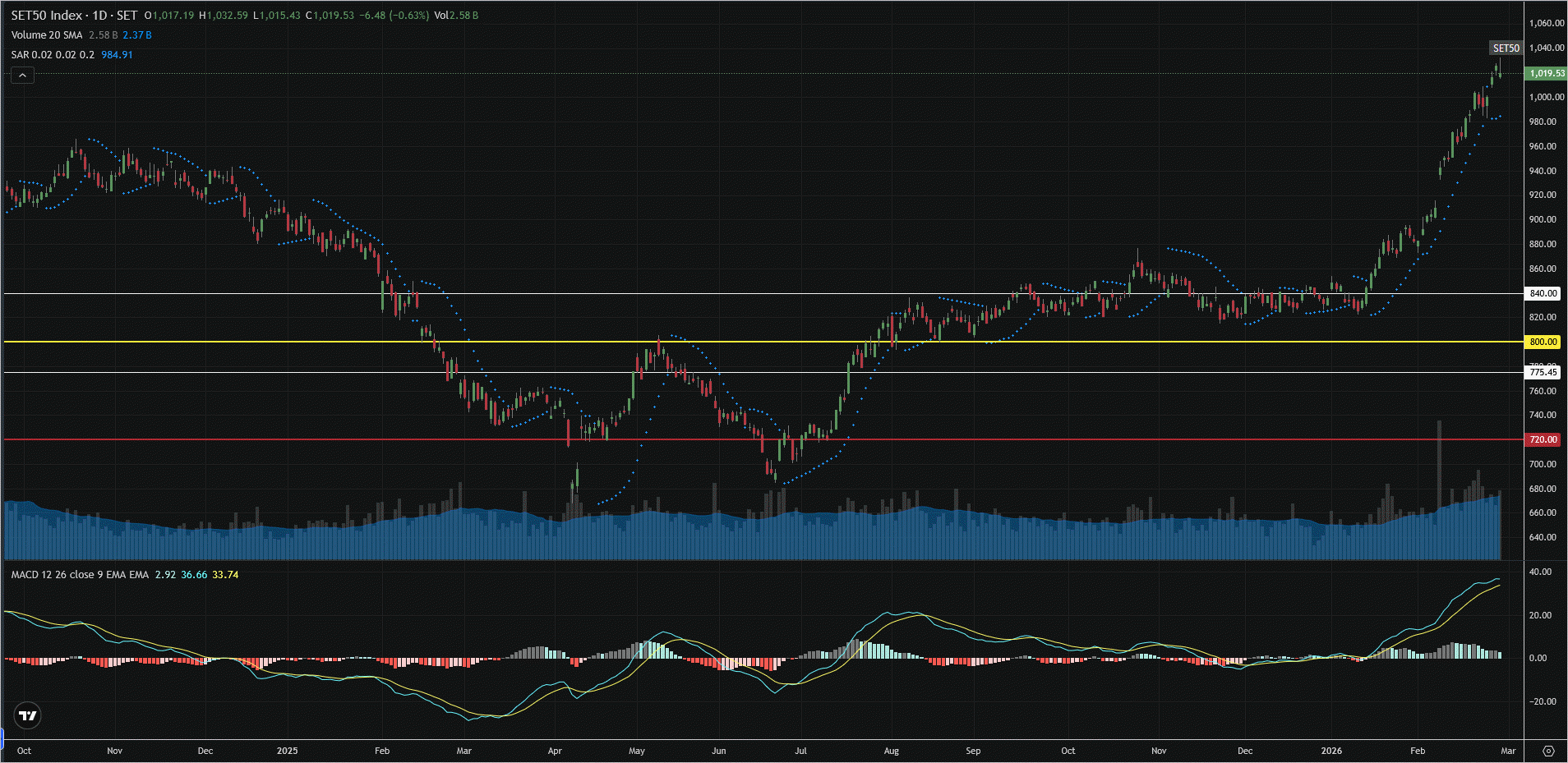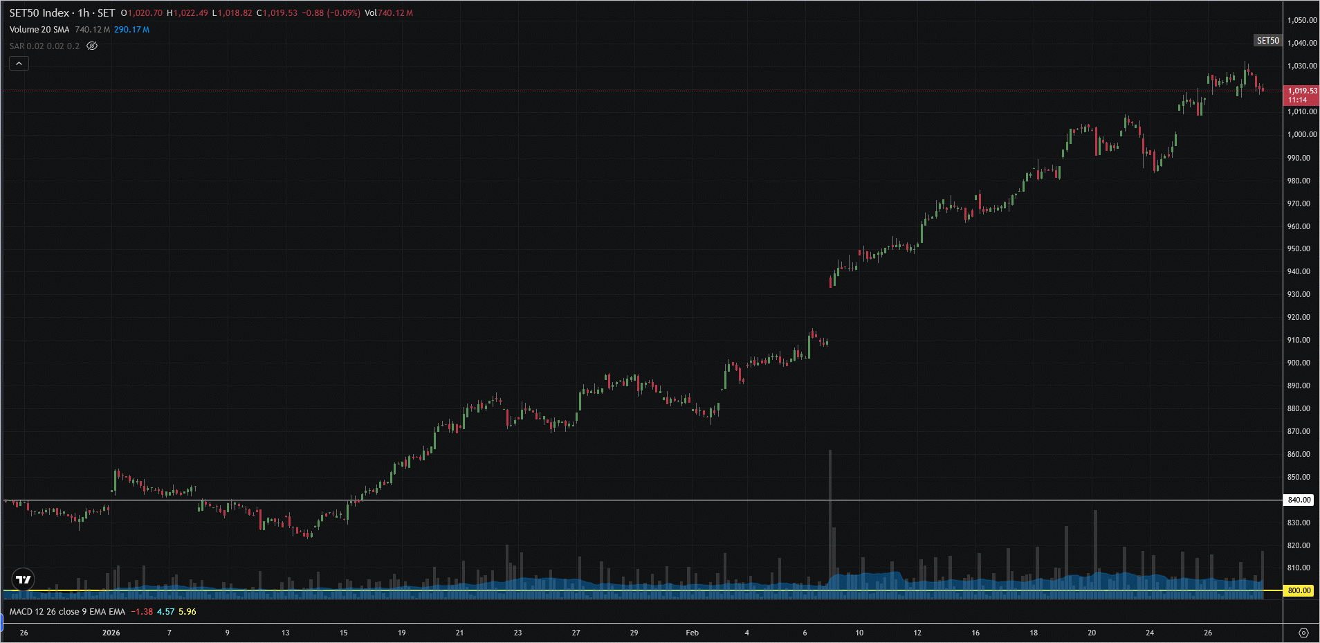 SET50: EOD 26 กุมภา 2569, 1,026.01, +9.82, +0.97%